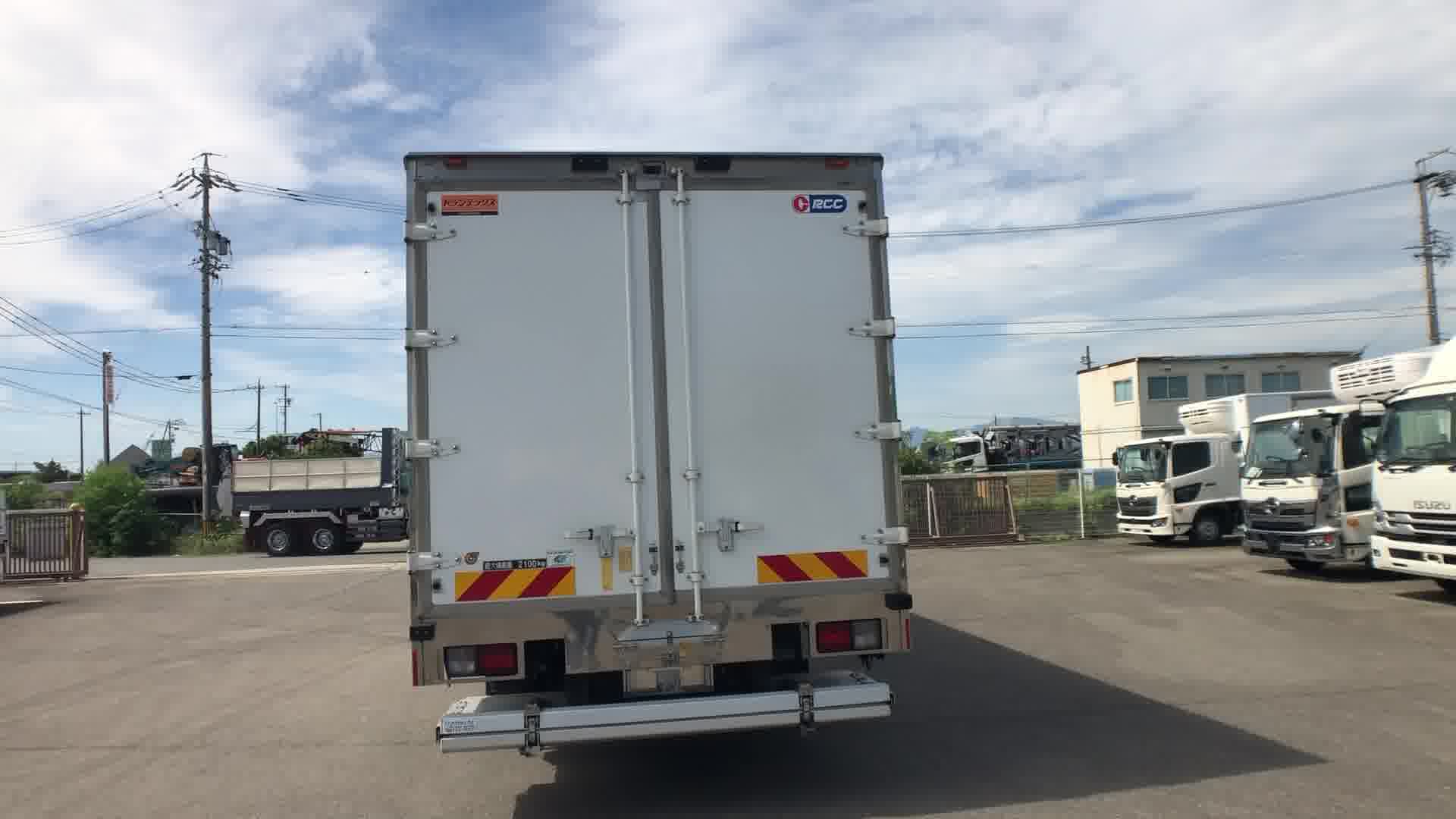 | 装備 | 最大積載量:2100kg / 上物:トランテックス(シリアルNo:V016H13-02) / 冷凍機:三菱(30℃~-30℃設定・25℃→5℃ 1時間・1室・直結式) / 格納式パワーゲート(トランテックス L:155cm W:220cm 荷重:1000kg・型式:TRAK10-6495D・シリアル№:S2107006536・ラジコン・箱内リモコン) / 床:キーストン / ジョルダー ミゾ4列 / ラッシング 2段 / イモビライザー / アドブルー / カラーバックモニター / ETC / エアサスシート / ベッド | ||
