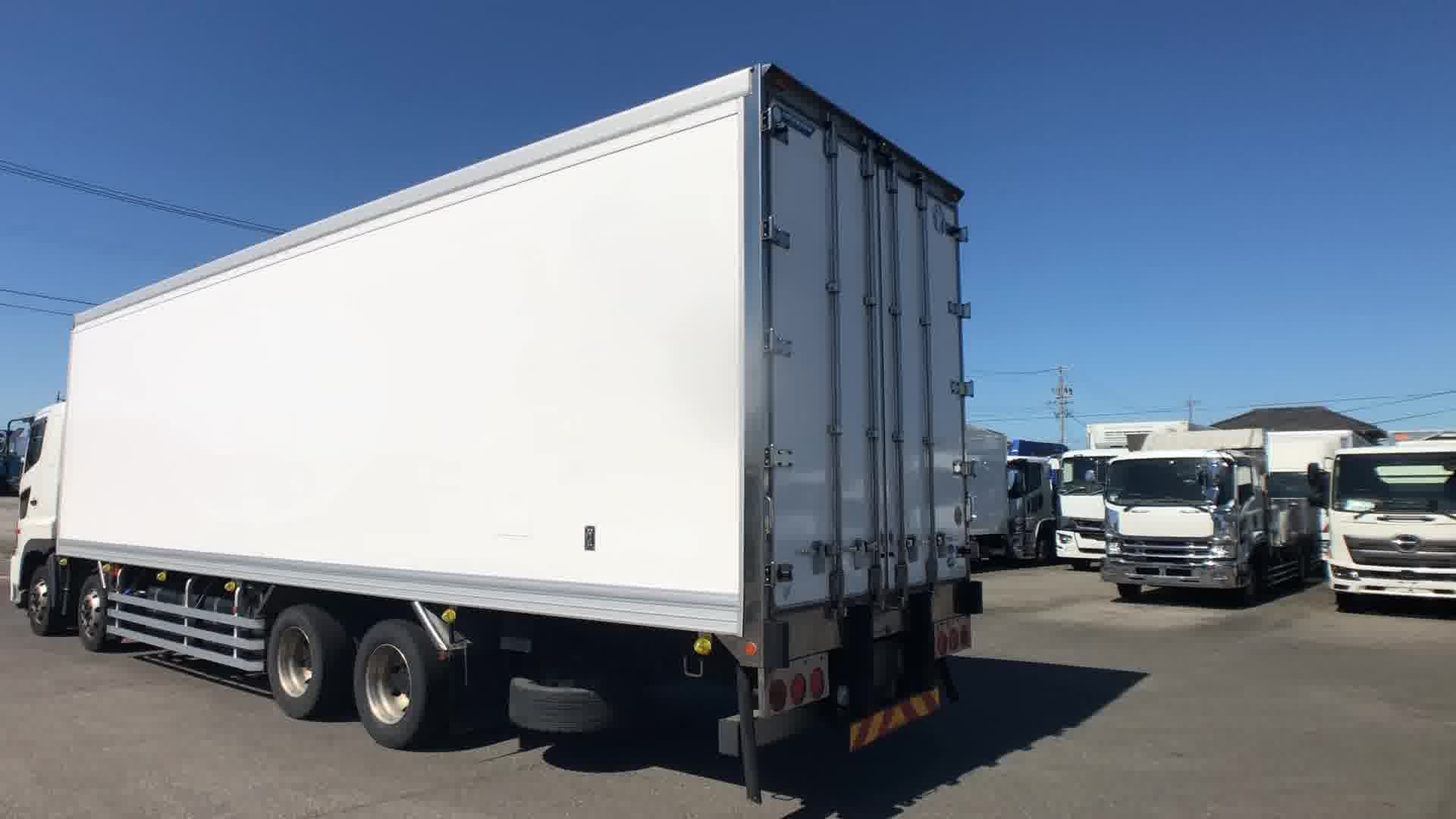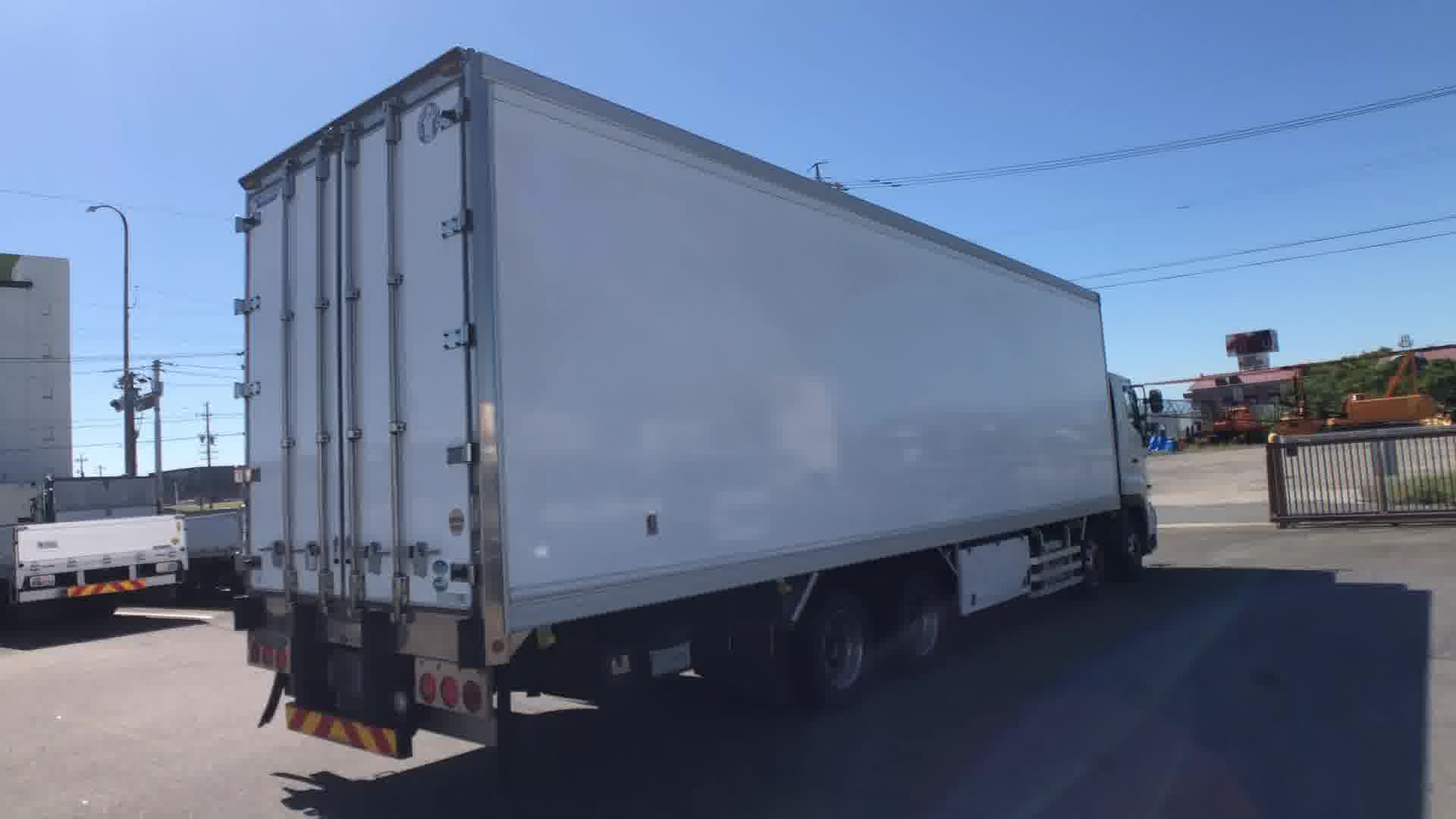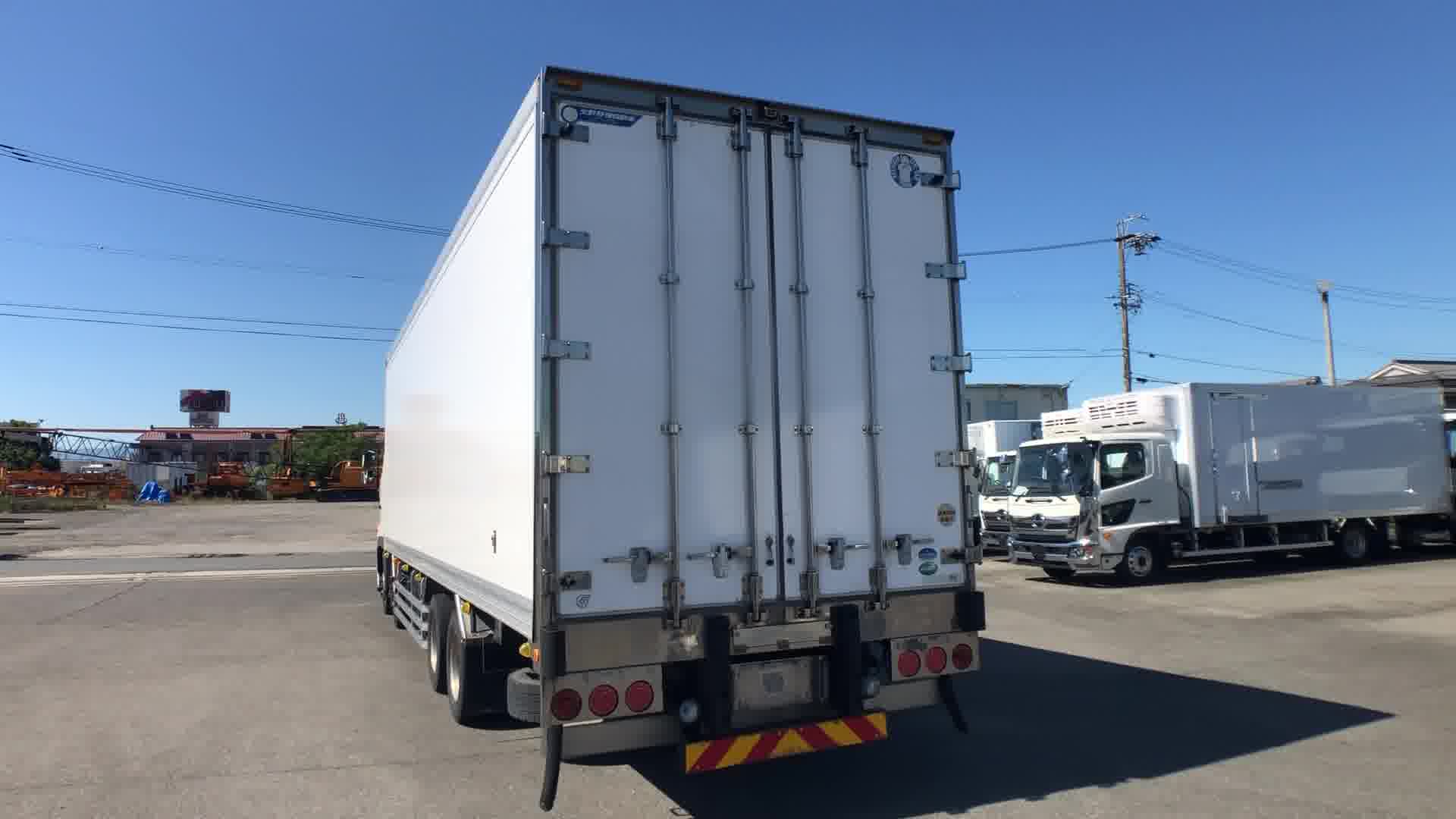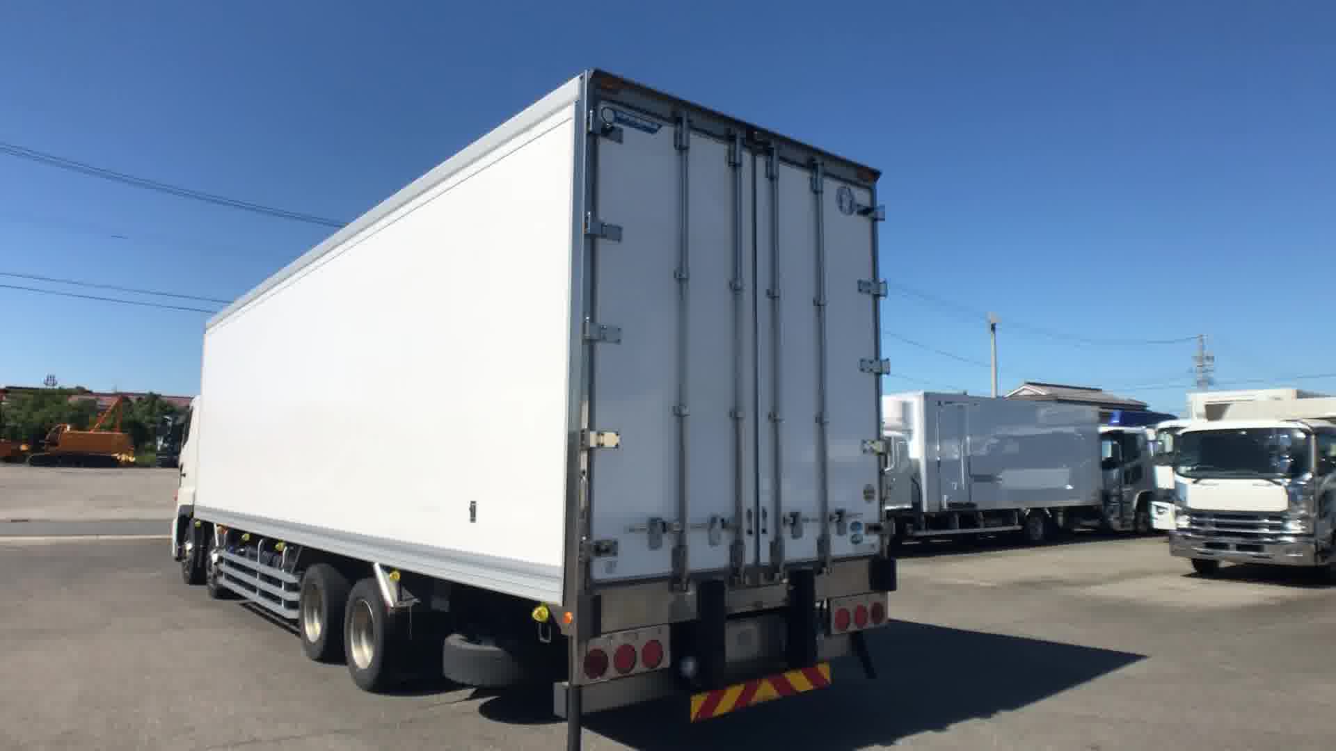 | 装備 | 最大積載量:11300kg / 上物:矢野特殊自動車(シリアル№:100146) / 冷凍機:三菱(型式:TU100SA・30℃~-35℃設定・24℃→6℃ 1時間・スタンバイ(コード無)・1室・サブE/G式) / 床:アルミシマ板 / ジョルダー ミゾ4列 / ラッシング 2段 / キーレス / イモビライザー / リターダー(EG・TM) / アルミホイール / アドブルー / カラーバックモニター / ETC / エアサスシート / ベッド | ||
