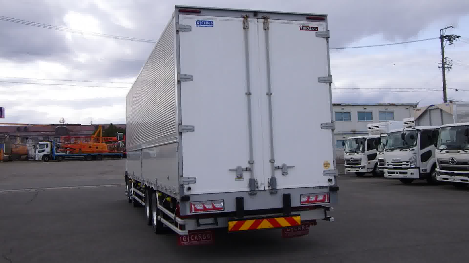 装備 最大積載量:13700kg / 上物:日本フルハーフ(型式:DKL・シリアル№:W8KH606) / 床:木 / 内フック 9対 / ラッシング 2段 / キーレス / イモビライザー / アルミホイール / アドブルー / カラーバックモニター / ETC / エアサスシート / ベッド