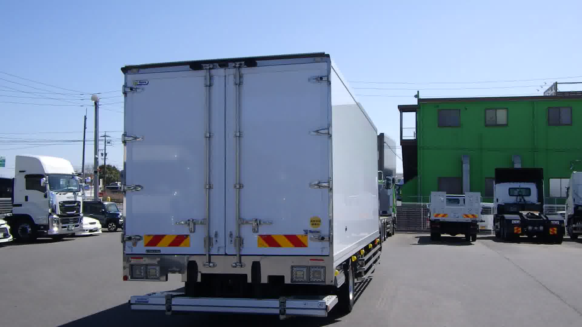 | 装備 | 最大積載量:5100kg / 上物:東プレ(年式:2022年8月・シリアルNo:F221985) / 冷凍機:東プレ(30℃~-30℃設定・11℃→-16℃ 1時間・1室・直結式) / 格納式パワーゲート(新明和工業 L:155cm W:230cm 荷重:1000kg・型式:RAK10-6495D・シリアル№:S2206000071・ラジコン・箱内リモコン) / ハイルーフ / 電動キャブチルト / 床:システムフロア / ラッシング 2段 / キーレス / イモビライザー / アルミホイール / アドブルー / カラーバックモニター / ETC / エアサスシート / ベッド | ||